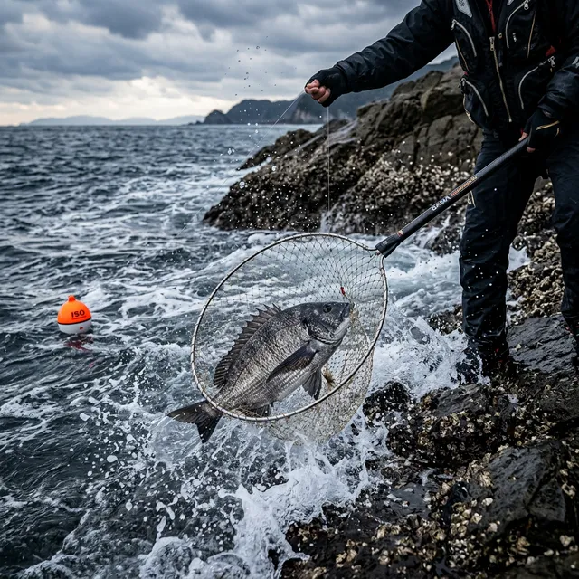 今切口の激流や二枚潮を攻略し、大型クロダイを仕留める。