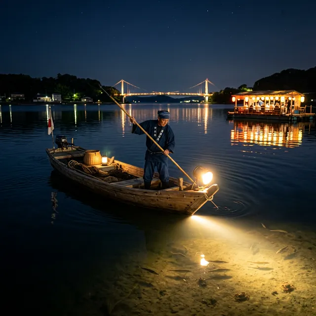 浜名湖ならではの幻想的な夜のエンターテインメント。モリで突く「たきや漁」と、網ですくう「えびすき漁」の特徴、開催時期、予約のコツ、宿泊と組み合わせた楽しみ方を詳しく解説します。
