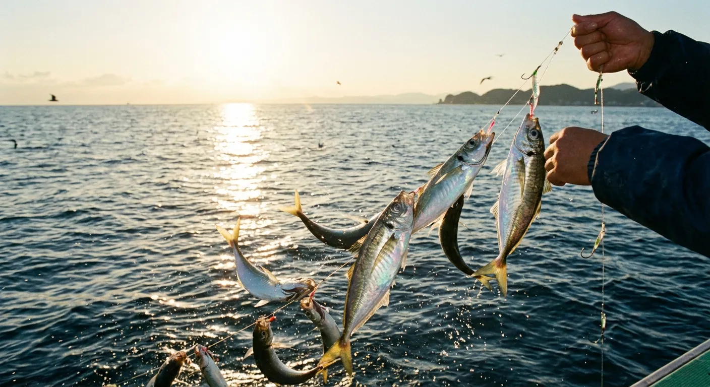 浜名湖のアジ釣りは、春の豆アジから成長した15〜20cmの良型が狙える秋がベストシーズン!新居弁天海釣公園や砂揚げ場など、初心者でも数釣りが楽しめる実績ポイントと、釣果を伸ばすためのサビキ釣りのコツを解説します。